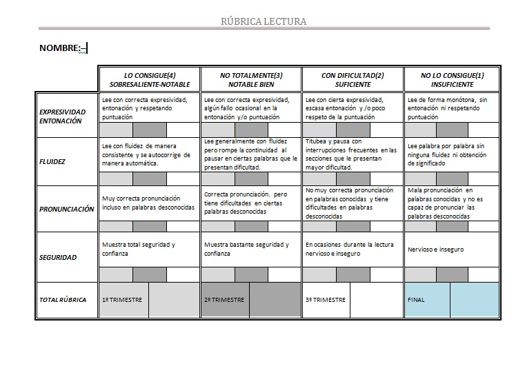 Rúbrica de Lectura
