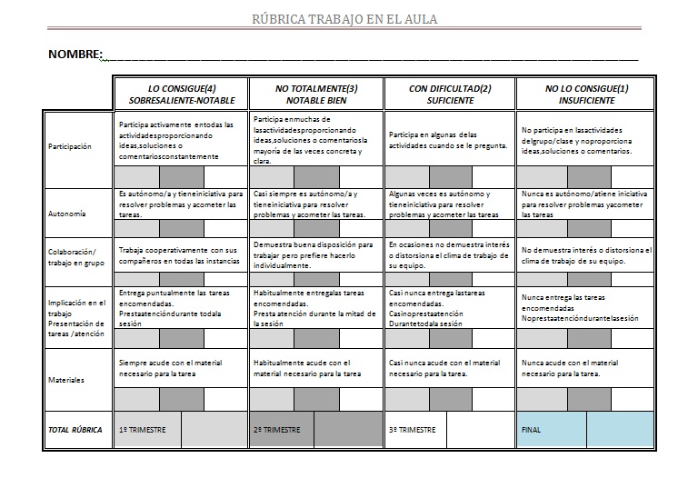 Rúbrica de Trabajo de aula